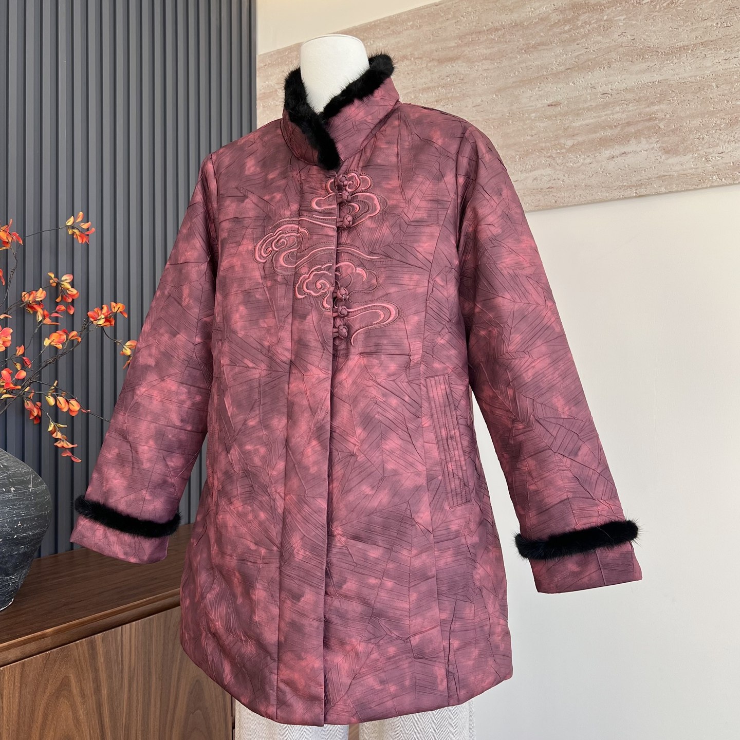 LATTICE TI2025新款中式国风轻薄羽绒服女中长款水貂毛领洋气外套