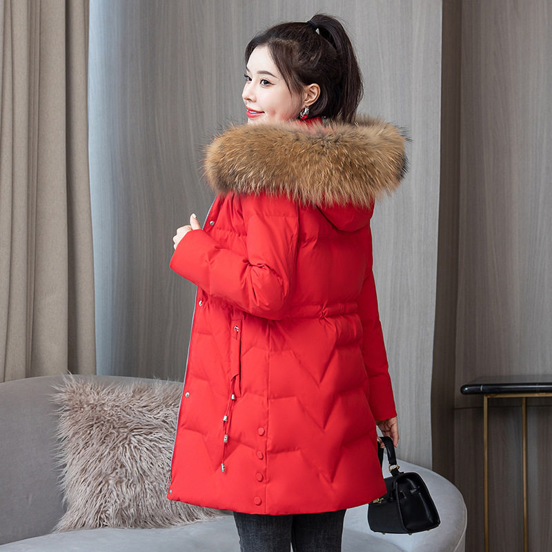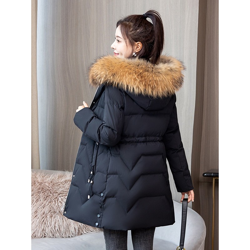 韩版羽绒服女中长款大毛领加厚修身收腰显瘦纯色保暖轻薄新潮冬装