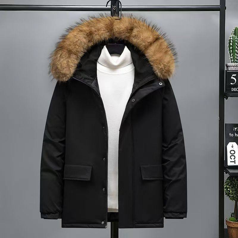 2023年羽绒棉服男女毛领冬季新款中长款宽松轻薄简约情侣外套男潮