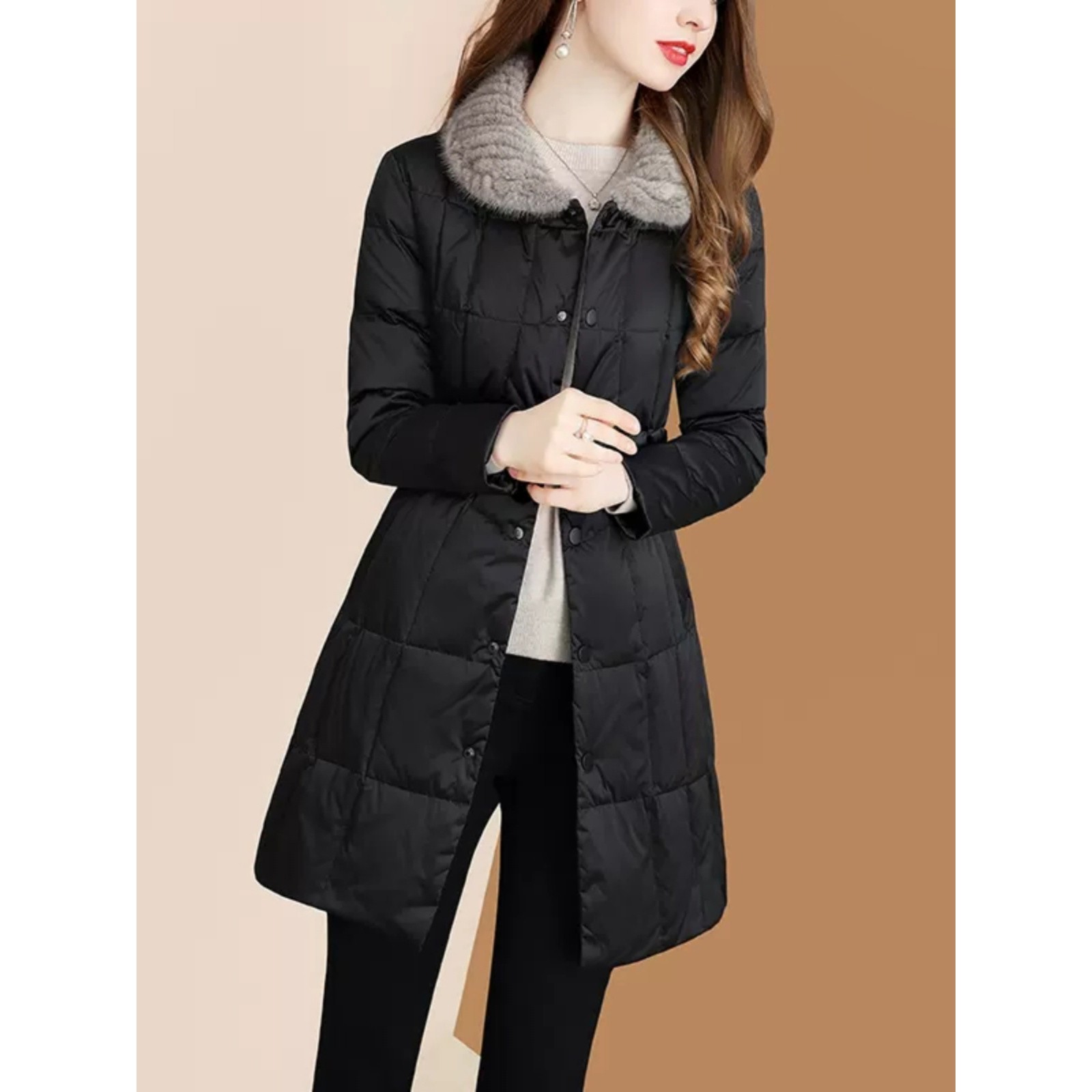 茗思轻薄时尚羽绒服女冬季2025新款水貂毛领保暖白鸭绒中长款外套