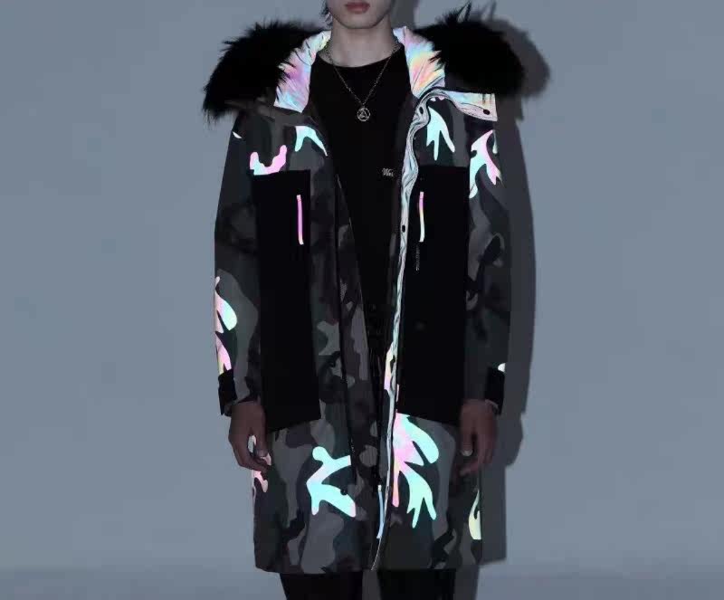 潮牌中长款迷彩大毛领羽绒服男女同款外套个性保暖羽绒轻薄迷彩羽