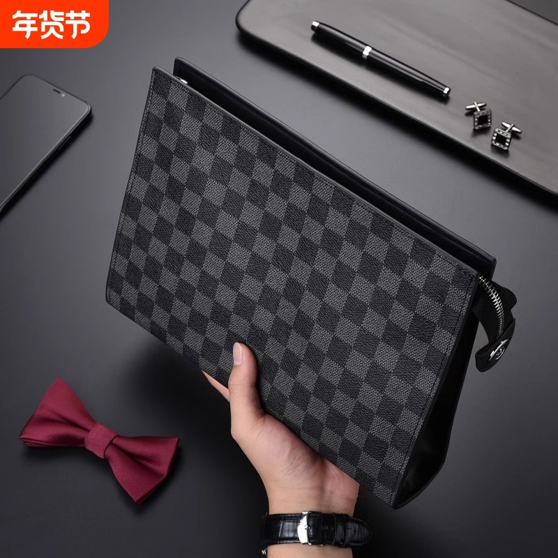 新款男士手拿包LPVC大牌手包男休闲大容量手抓包潮男棋盘格子夹包