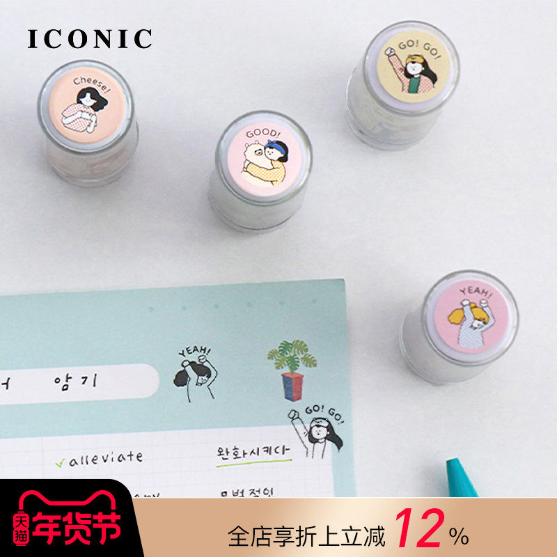 韩国ICONIC Haru女孩主题浸透式装饰印章可爱图案手帐相册贺卡手工DIY黑色墨水轻松压印小巧便携创意文具配件