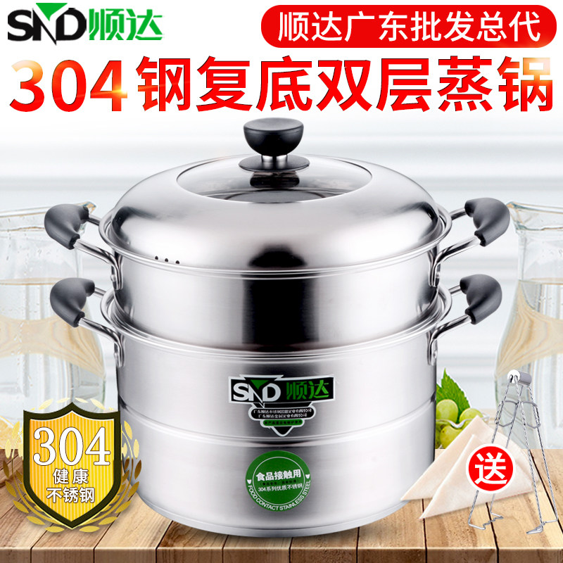 顺达304不锈钢蒸锅加厚复底双层多用锅蒸格家用蒸包子蒸笼屉汤锅