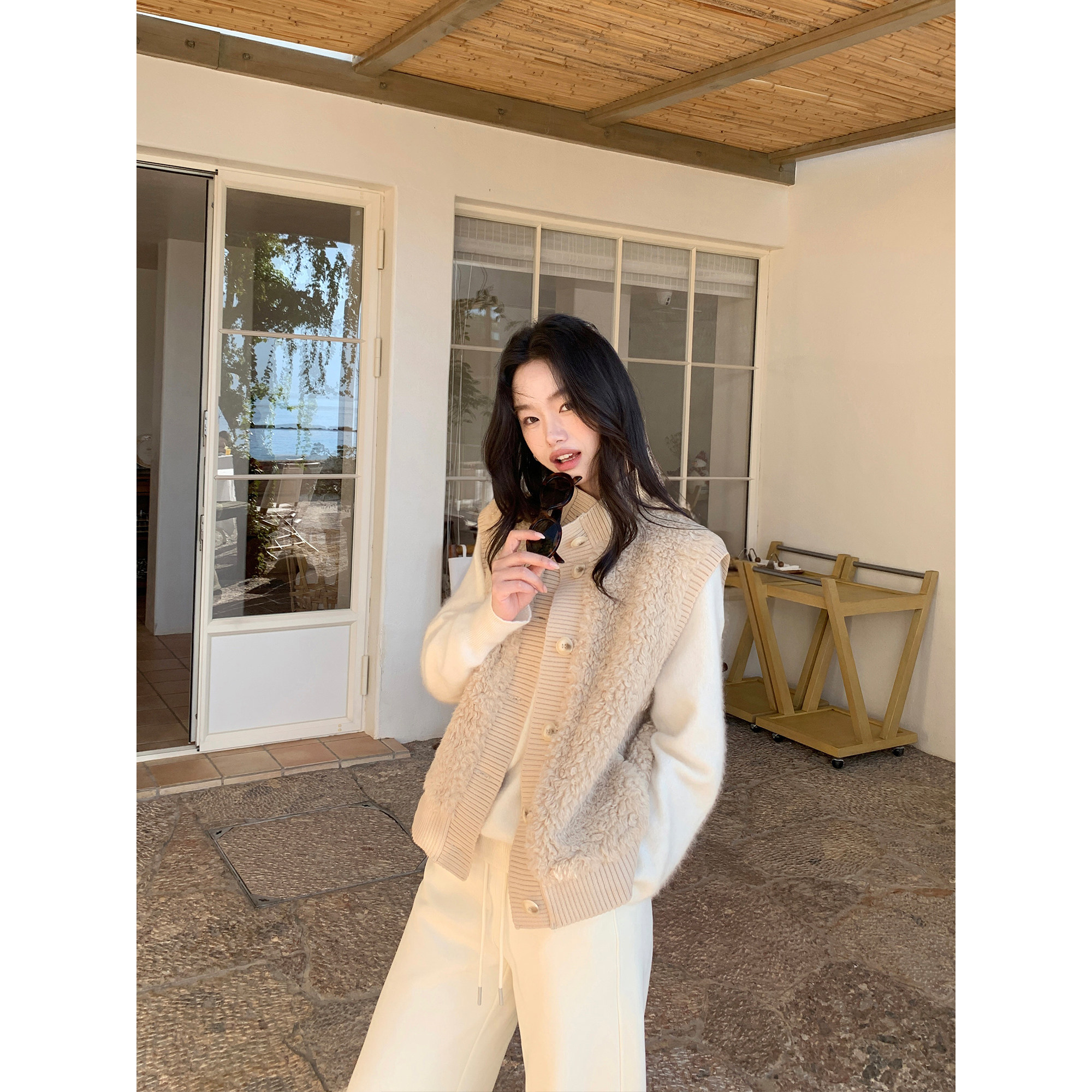 HAMYIHO 环保皮草外穿毛毛马甲女毛茸茸冬季背心外套短款无袖上衣