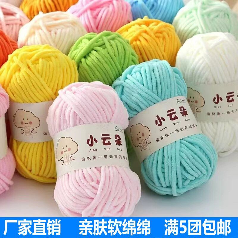 小云朵雪尼尔毛线团冰条线细冰条手工diy编织围巾粗线暖绒勾拖鞋