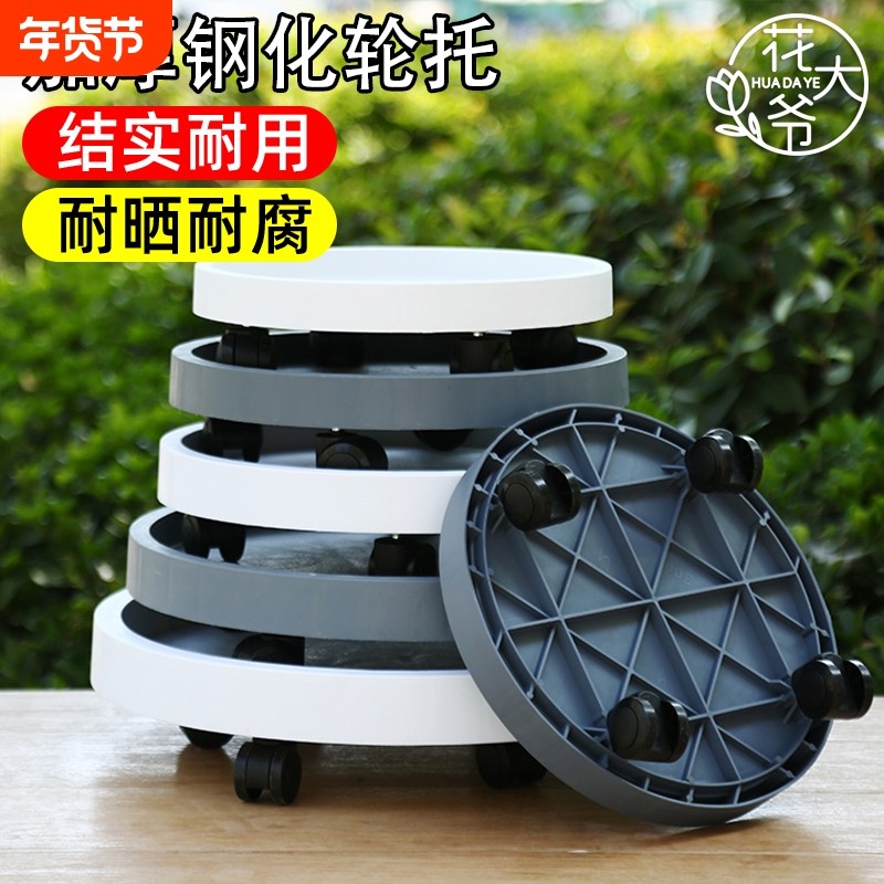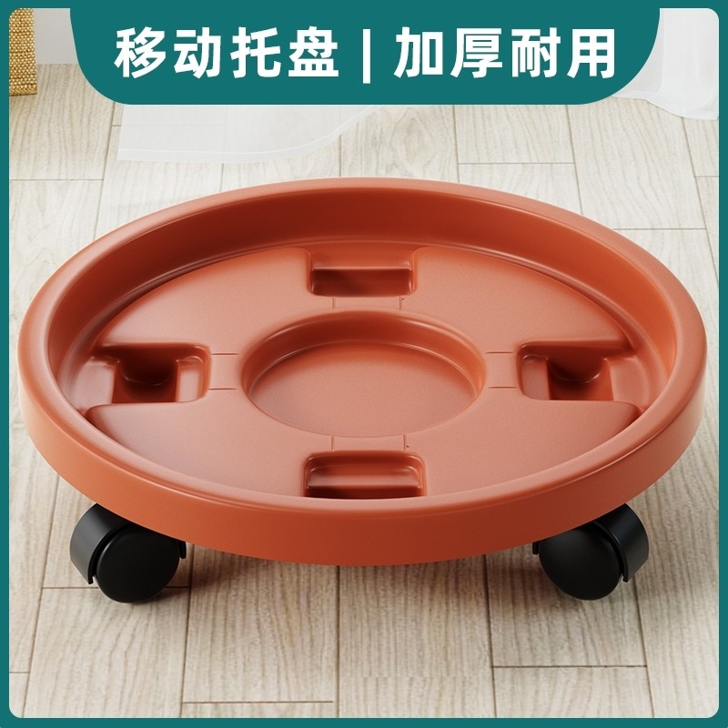 加厚移动花盆托盘万向轮圆形花盆底座带滚轮塑料花托底盘接水托盘