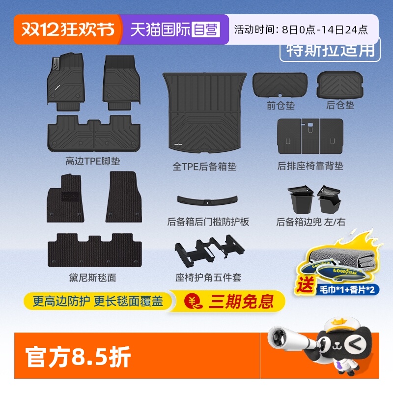 【自营】固特异全TPE汽车脚垫适用于特斯拉2025款焕新版ModelY/3