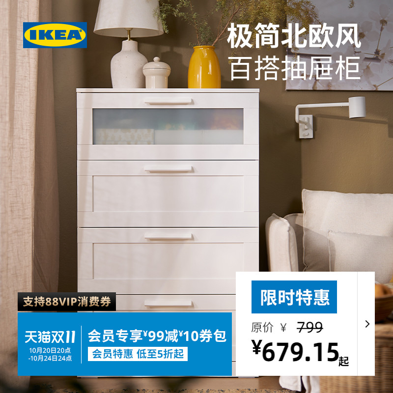 IKEA宜家BRIMNES百灵现代简约白色抽屉柜斗柜收纳柜储物柜北欧风