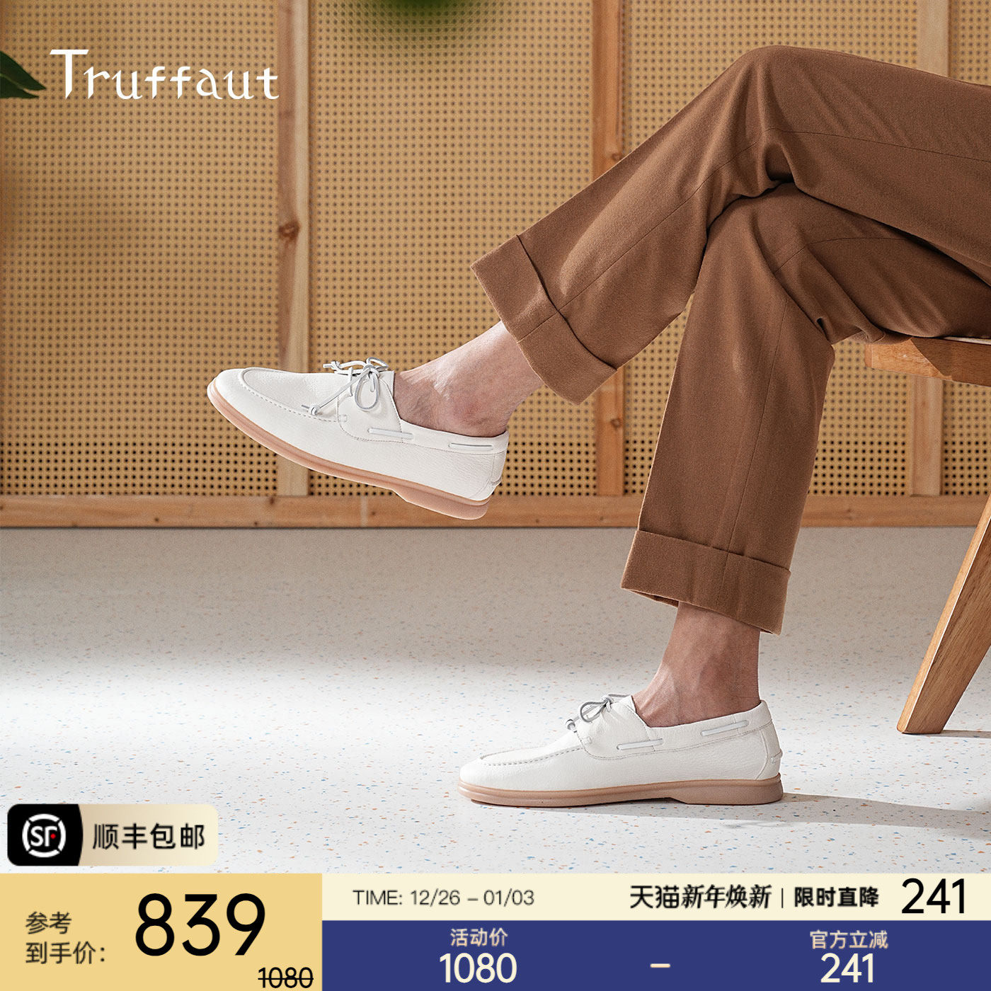 Truffaut鹿皮帆船鞋男一脚蹬休闲皮鞋英伦透气乐福鞋商务通勤男鞋