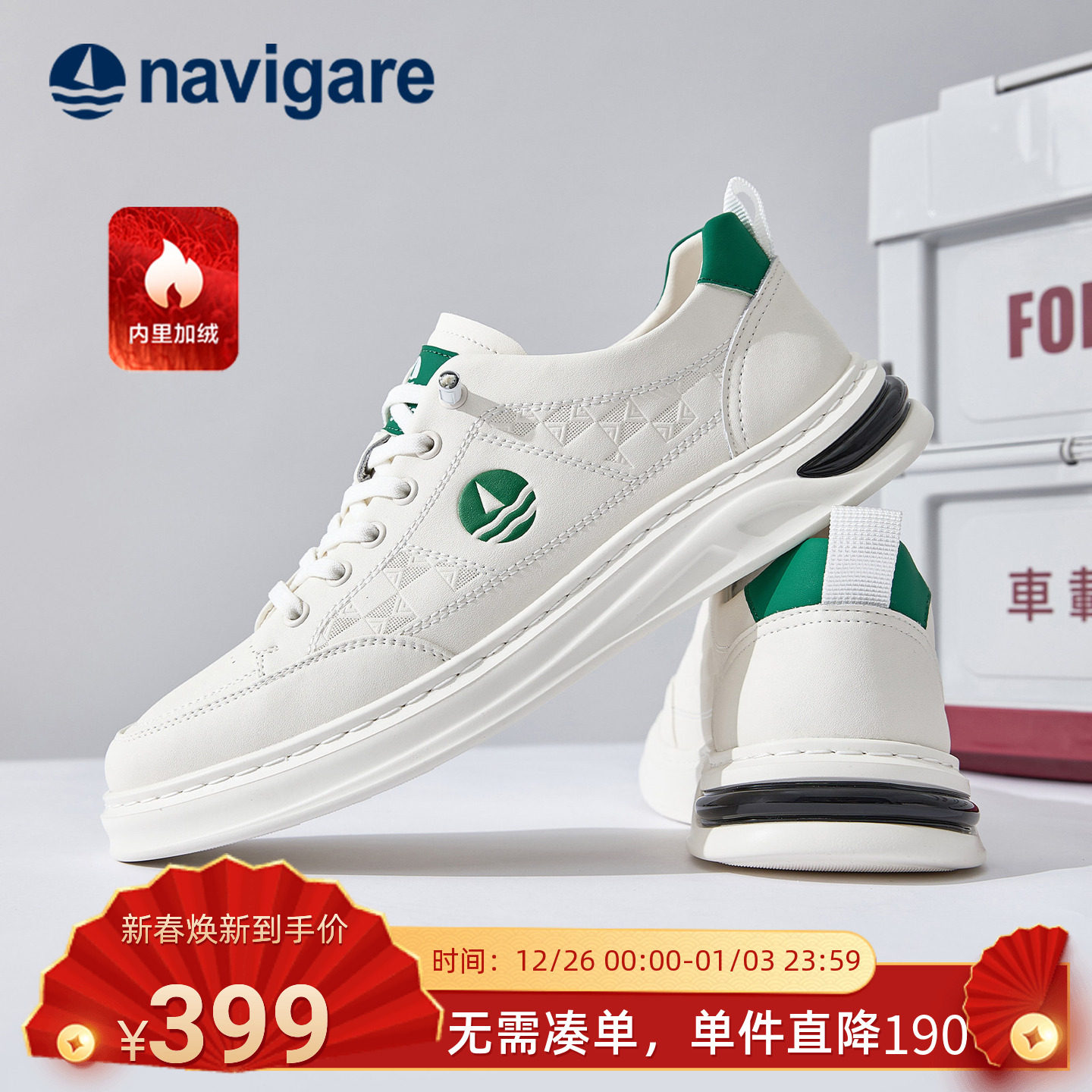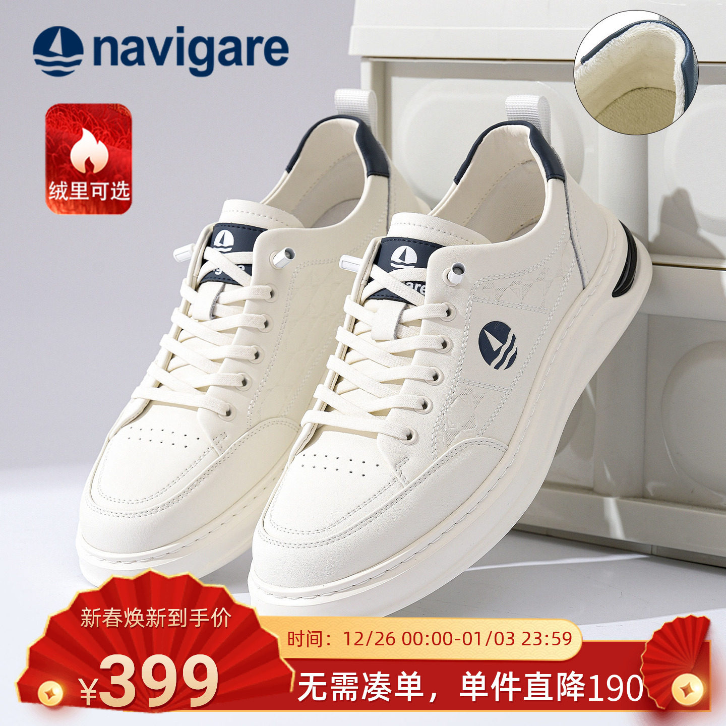 Navigare意大利小帆船男士小白鞋2025秋冬季新款男鞋加绒休闲板鞋