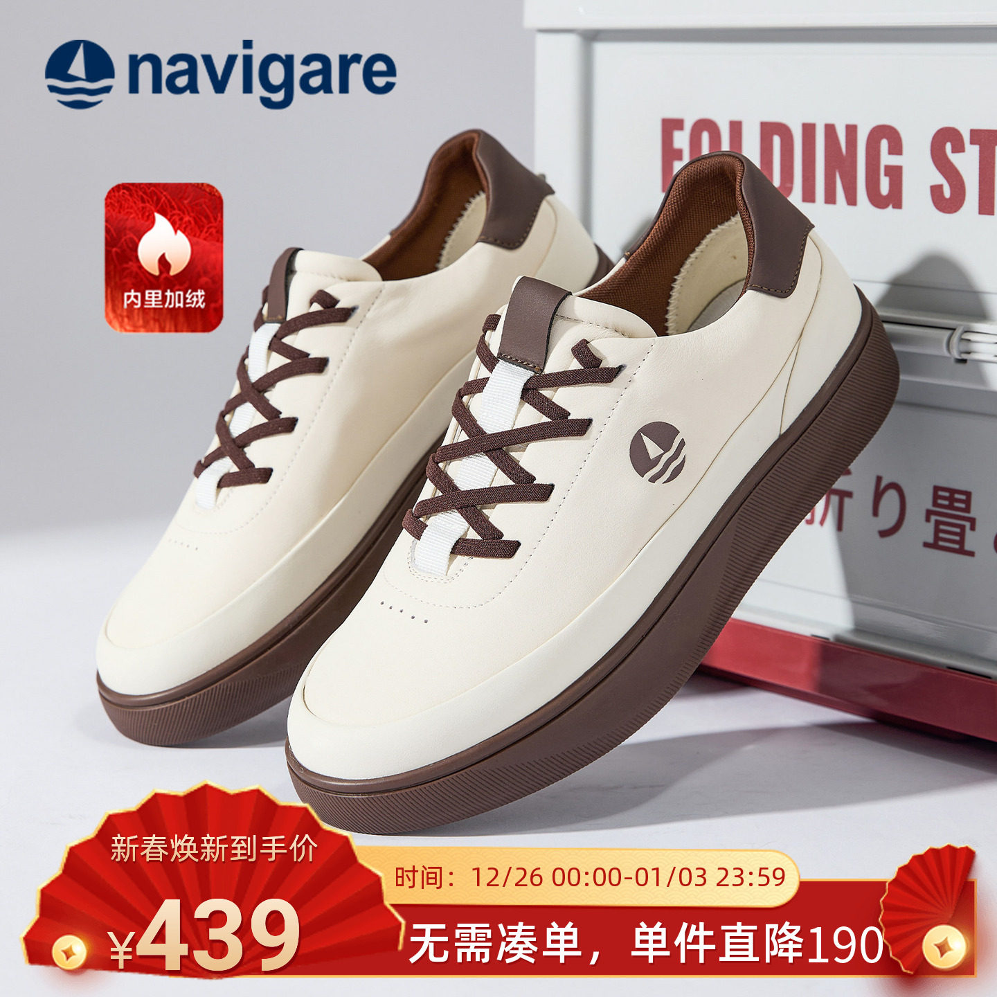Navigare意大利小帆船男士板鞋2025秋冬季新款加绒厚底休闲小白鞋
