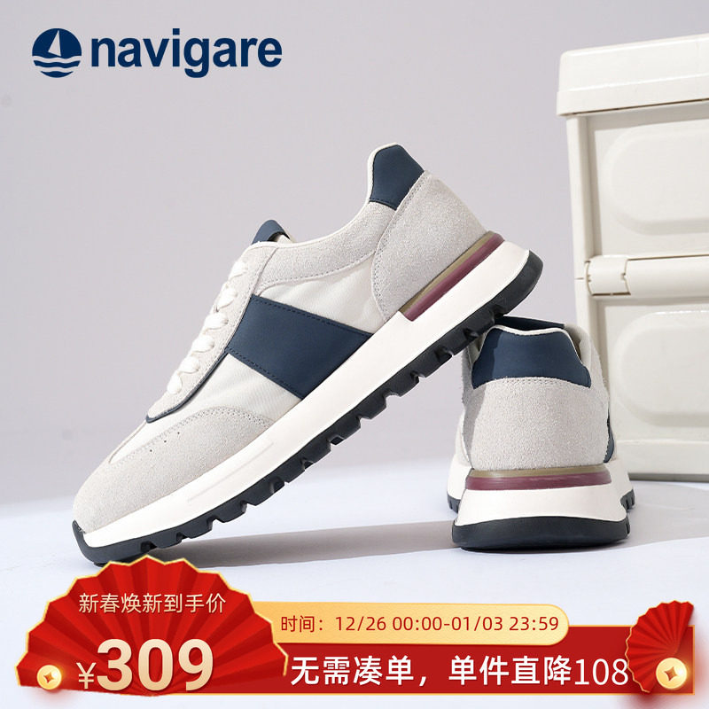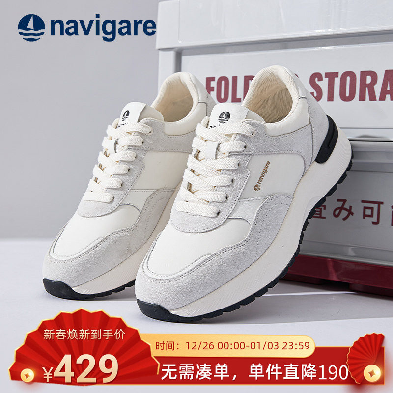 Navigare意大利小帆船男鞋2025春秋季新款男士运动厚底透气老爹鞋