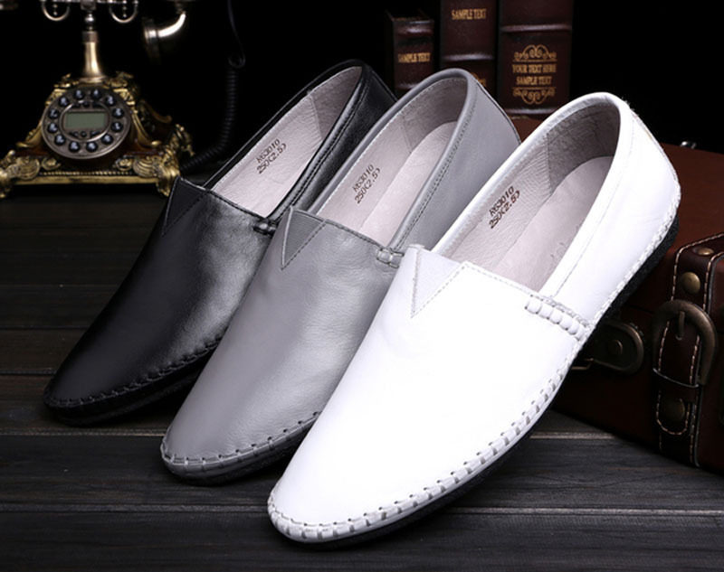 春夏新款真皮小白鞋潮流舒适软底休闲鞋软皮鞋懒人鞋帆船鞋男单鞋