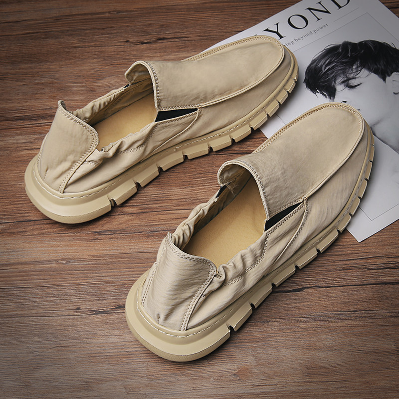 夏季薄款帆船鞋男士日常休闲鞋男鞋透气帆布豆豆鞋一脚蹬懒人鞋子