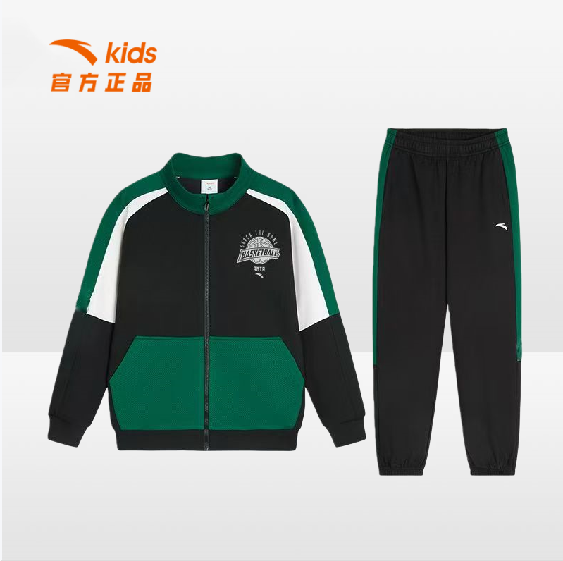 安踏儿童男女童针织篮球运动套装2025冬季新款保暖防风运动厚外套