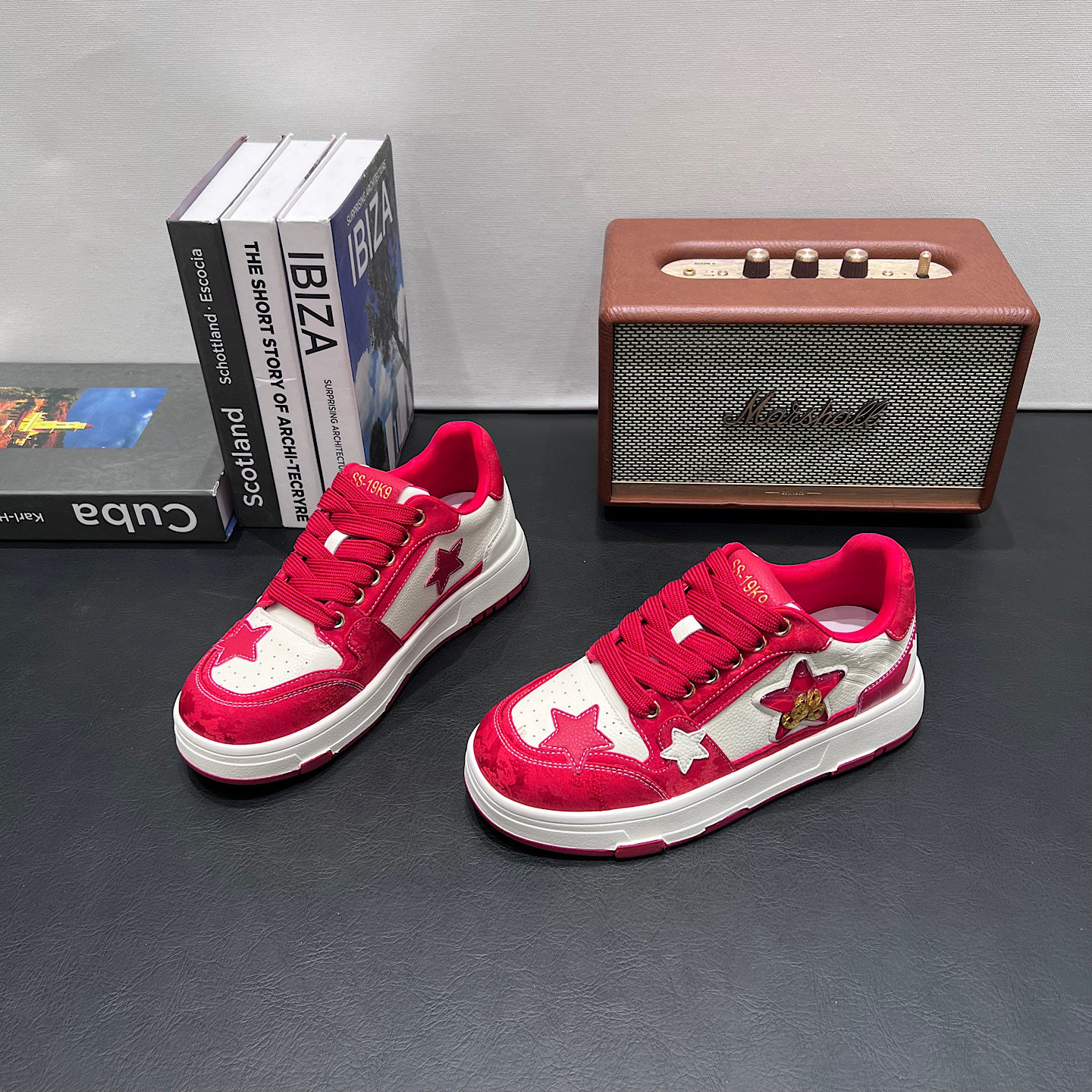 EBLAN/伊伴本命年红色星星鞋女2026春季新款马年厚底男女休闲板鞋