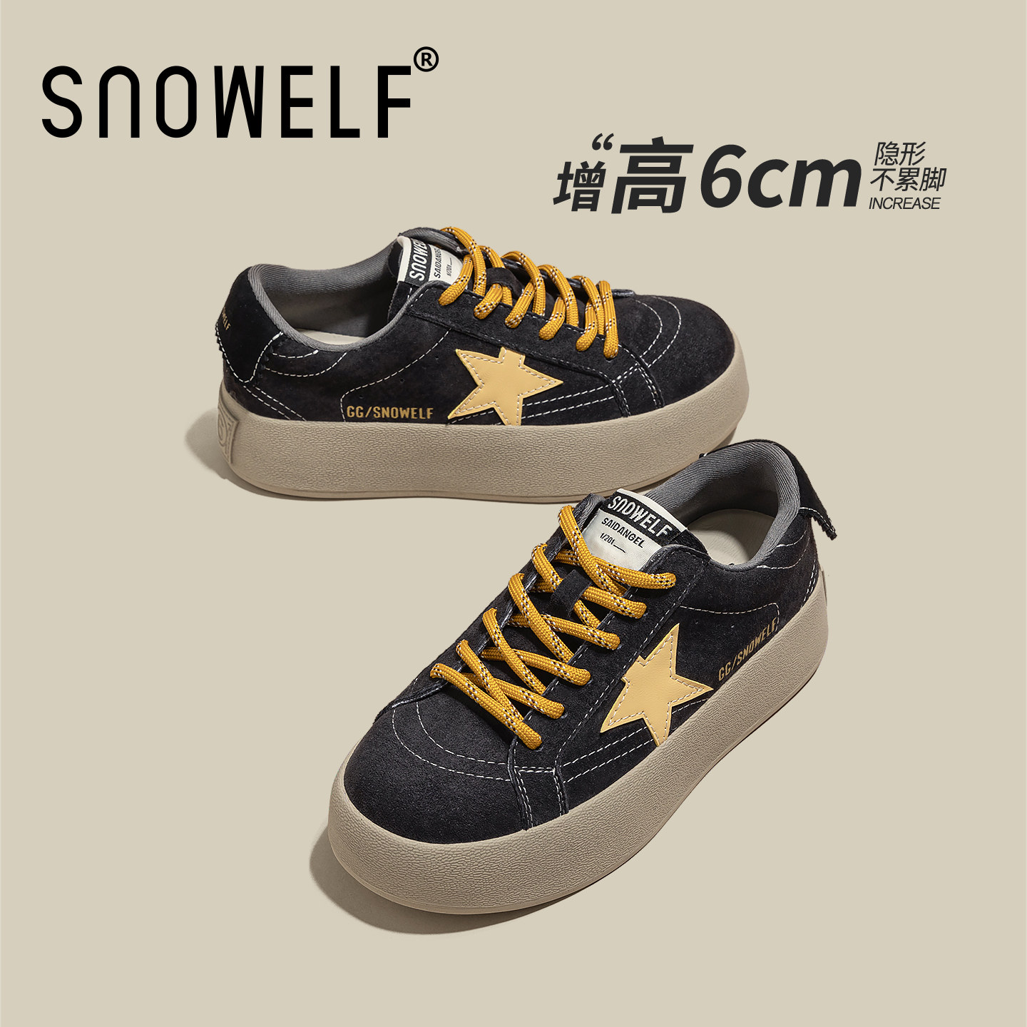 2026新款真皮做旧星星鞋女厚底增高脏脏鞋百搭休闲运动板鞋小白鞋