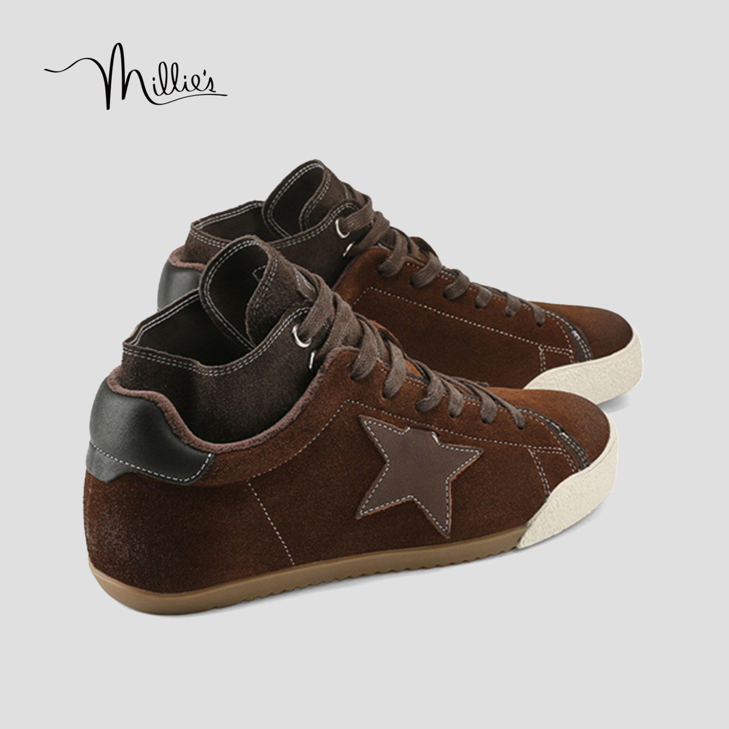 MILLIE'S/妙丽牛皮星星鞋女冬款内增高软底系带休闲脏脏德训鞋子Q