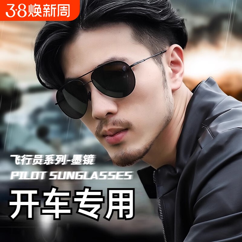 记忆钛合金超轻偏光太阳镜男开车专用眼镜变色墨镜新款蛤蟆镜飞行