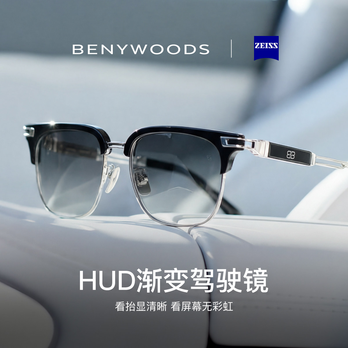 德国BENYWOODS变色墨镜偏光HUD渐变遮阳镜蔡司可配度太阳镜男开车