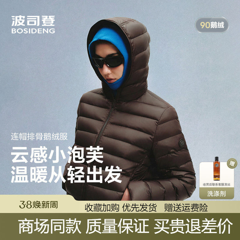 波司登2026春季新款女士轻薄鹅绒短款连帽宽松小龟背排骨条羽绒服