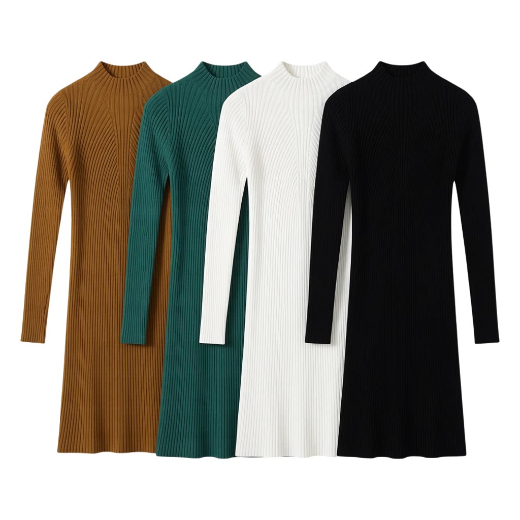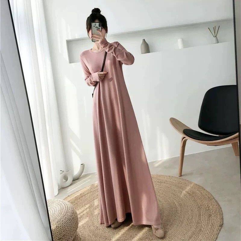 针织连衣裙中长款女士毛衣裙长袖内搭秋冬季打底加厚女装新款长裙