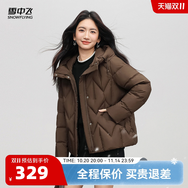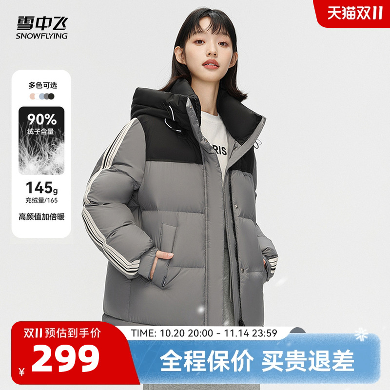 雪中飞2025秋冬爆款女士短款连帽羽绒服泡芙条纹暖抗寒运动青春