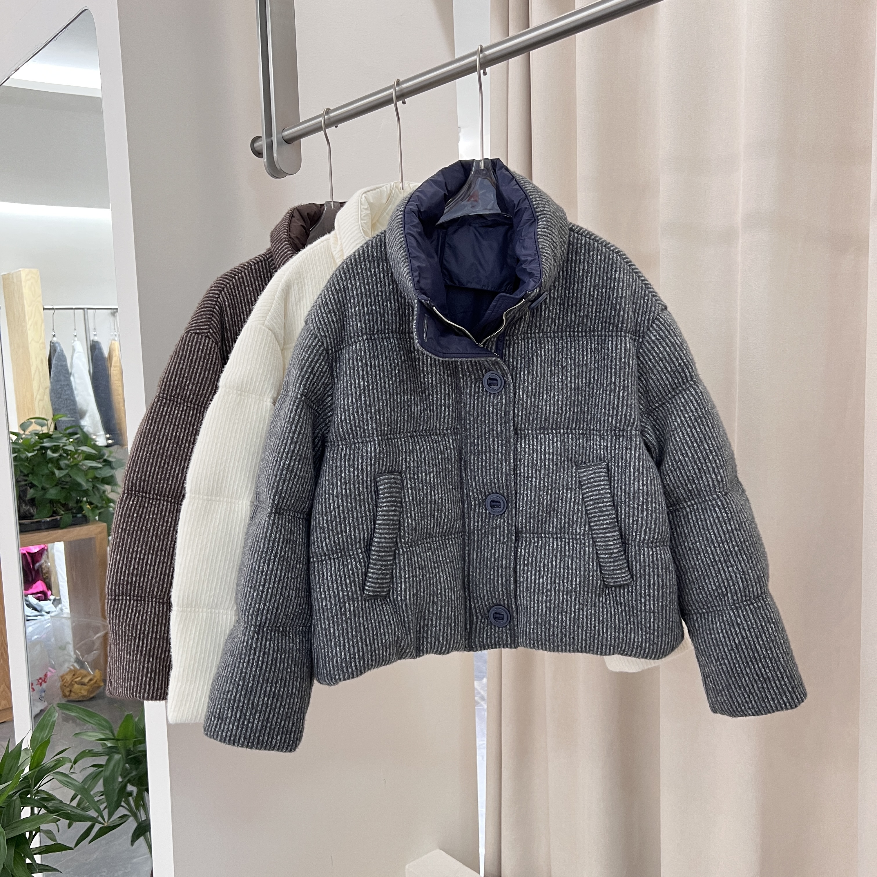 ALL BEINGS25AW冬季新款条纹立领短款花苞鹅绒空气感加厚羽绒服女
