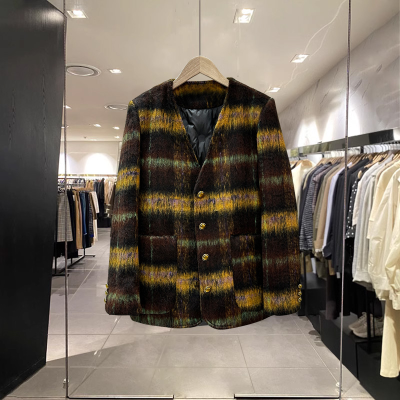 沫希妮小香风羽绒服女冬季2025新款高端法式条纹羊毛西装式短外套