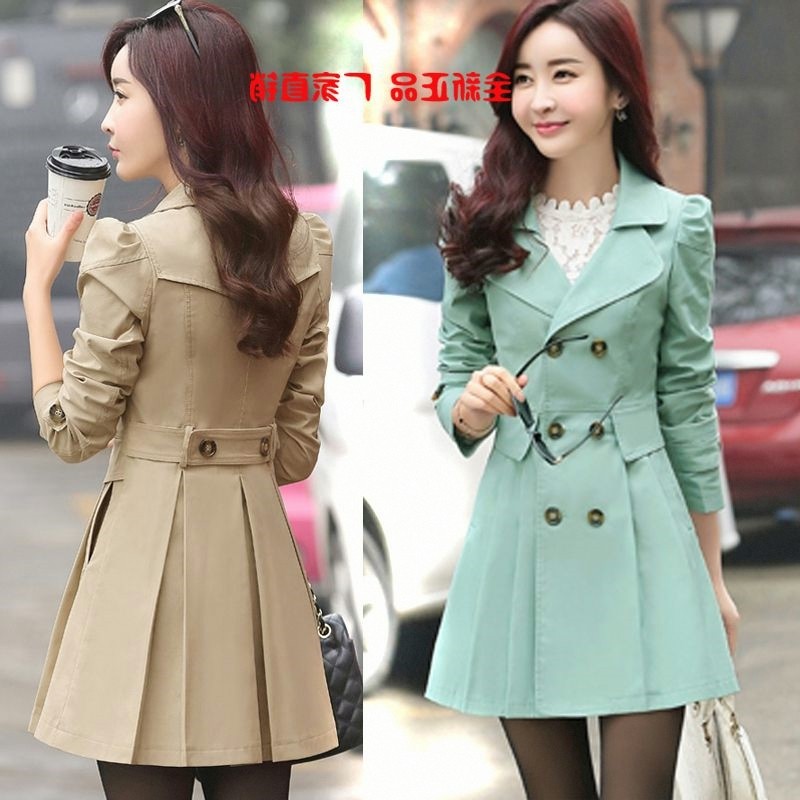 阿车家的大码JK 卡其色中长款风衣女春季新款韩版双排扣短款外套