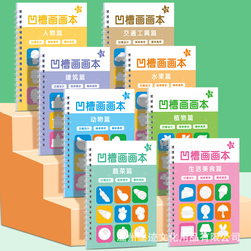 儿童凹槽画画本绘画简笔画入门宝宝控笔训练本幼儿园描临摹涂色本