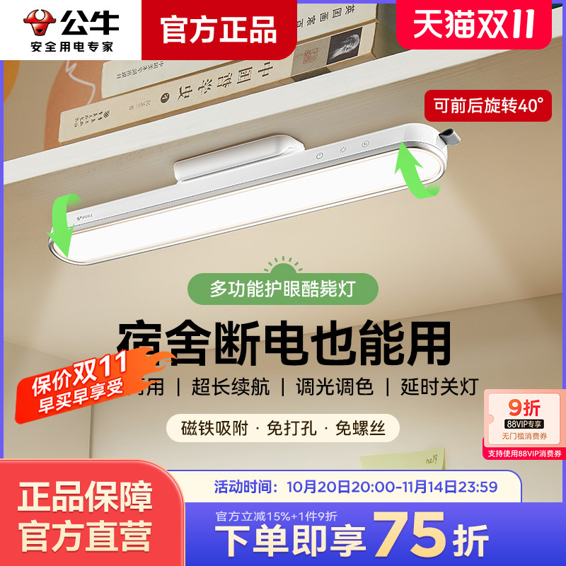 公牛学生宿舍LED酷毙灯磁吸附式学习专用护眼台灯橱柜书桌USB灯管