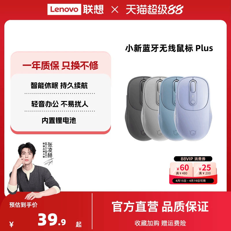 联想小新蓝牙无线轻音蓝牙充电双模鼠标 办公学习笔记本电脑鼠标