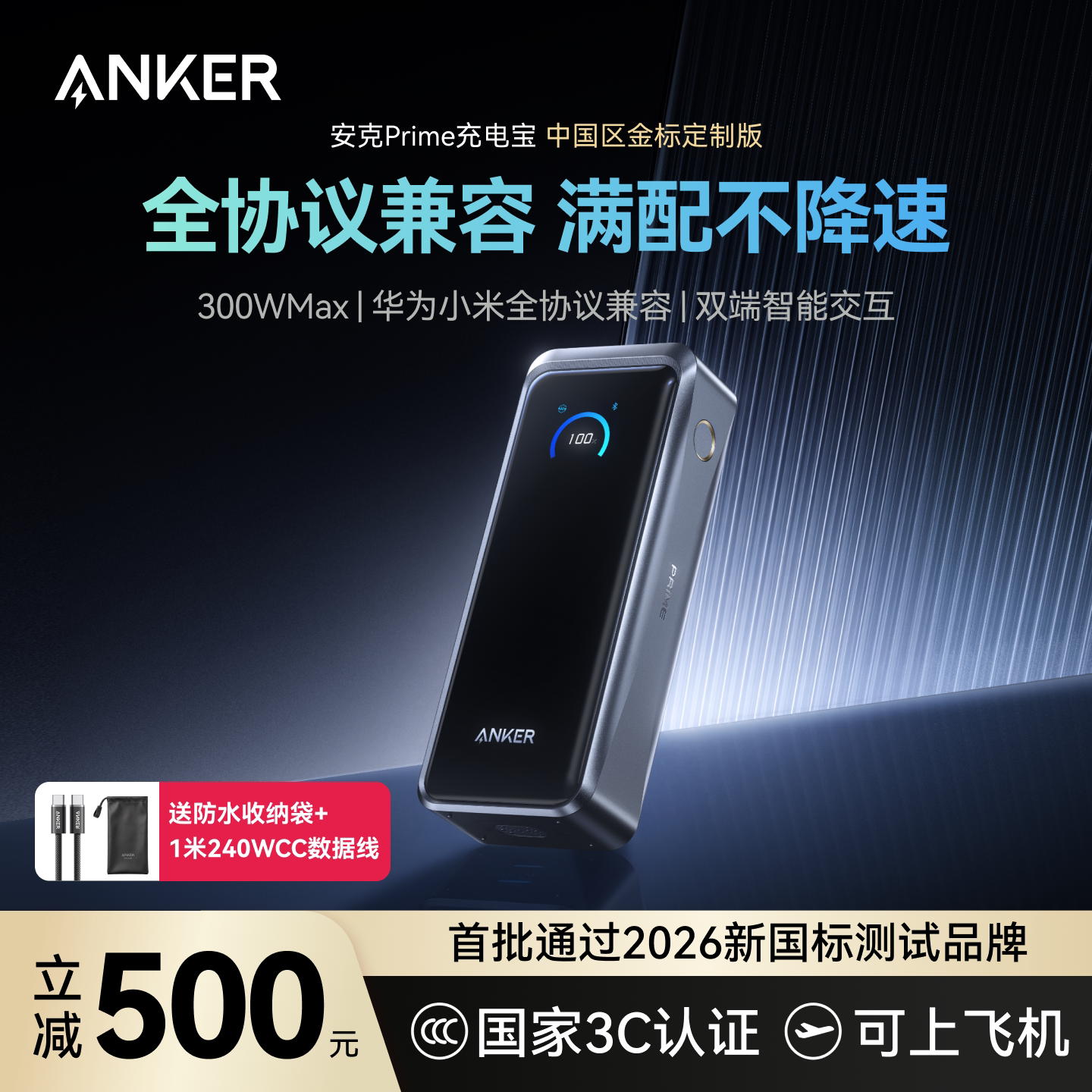 【旗舰新品】Anker Prime安克充电宝300W快充大容量20000毫安3C认证可上飞机移动电源适用苹果华为小米电脑17