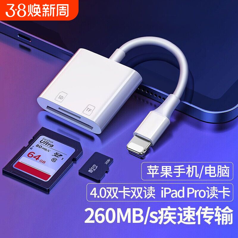 能适相机读卡器sd卡适用苹果索尼佳能尼康iPhone口传输线手机tf内存OTG转换器typec转接头ccd连接直传cf全能