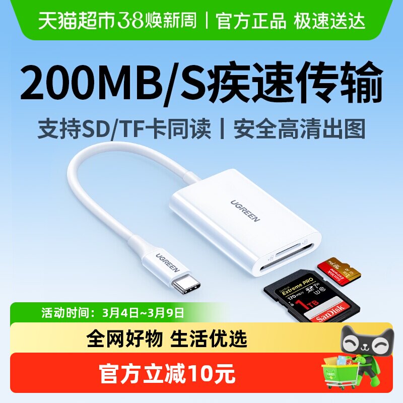 绿巨能相机读卡器SD卡TF卡CCD卡佳能索尼高速传输内存卡typec转换器手机电脑通用多功能合一USB3.0官方旗舰店