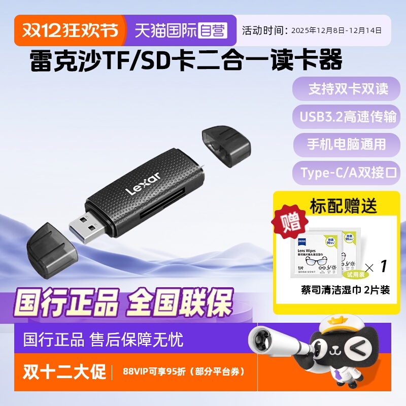 【自营】雷克沙Lexar USB3.2高速读卡器多合一 TF/SD 二合一 USB-A/C双接口 手机电脑平板高速内存卡读卡器
