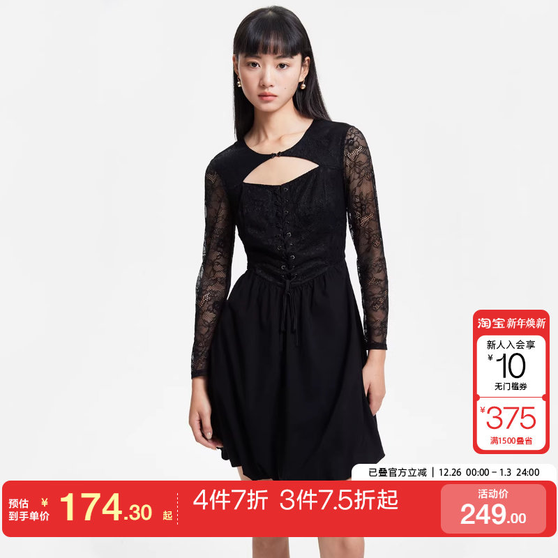 tq区绫致Vero Moda连衣裙25春夏高街长袖蕾丝七分袖裙女