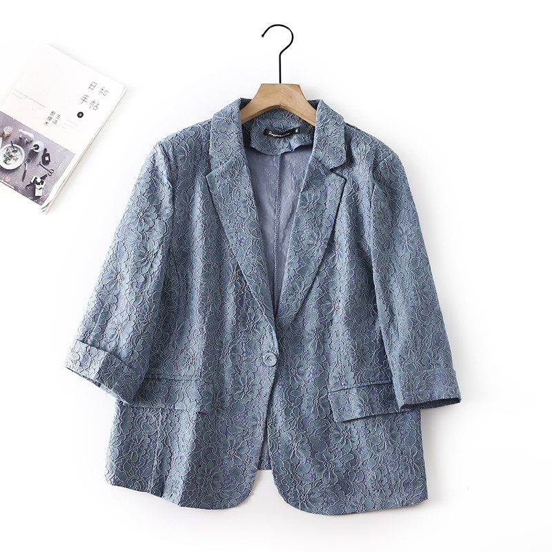 2023年春夏季女士款休闲大码外套胖mm宽松显瘦复古蕾丝七分袖西装