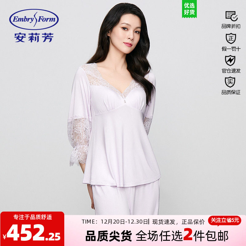 安莉芳抑菌蕾丝七分袖带杯垫睡衣家居服ELW0673/ELW0674