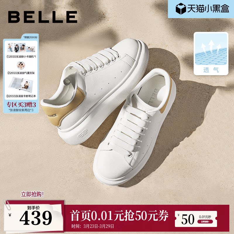 百丽女鞋厚底小白鞋26春季新款增高鞋通勤网面休闲板鞋D5Q1DAM6预