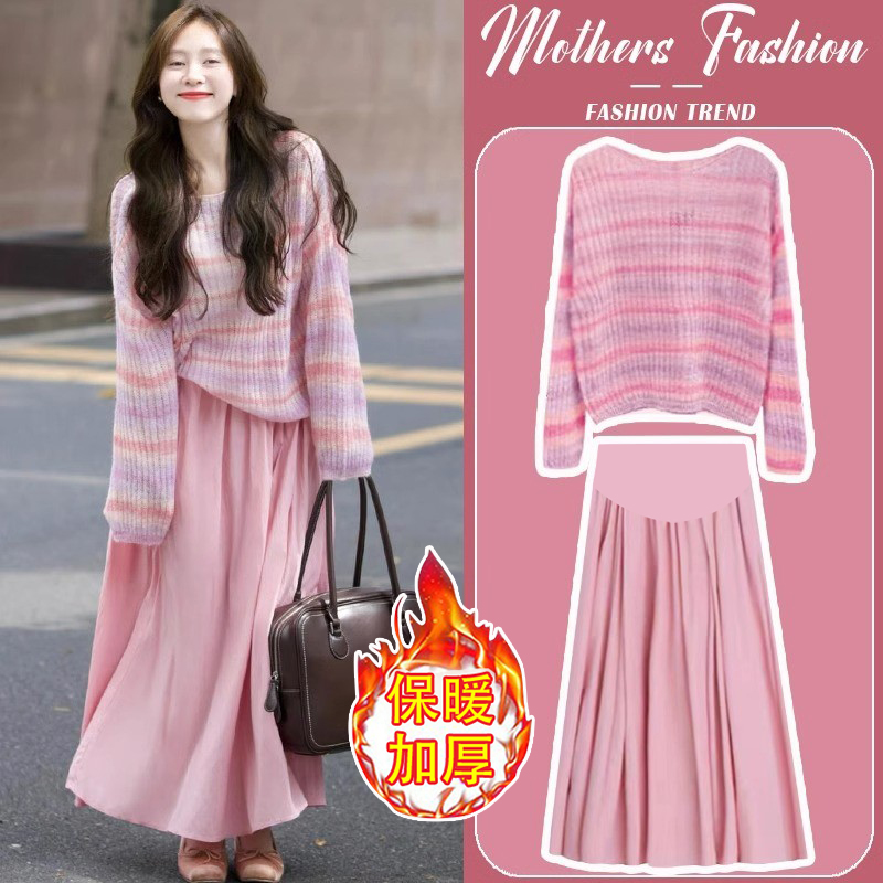 孕妇连衣裙套装秋冬2025新款宽松时尚潮妈针织毛衣半身裙两件套女