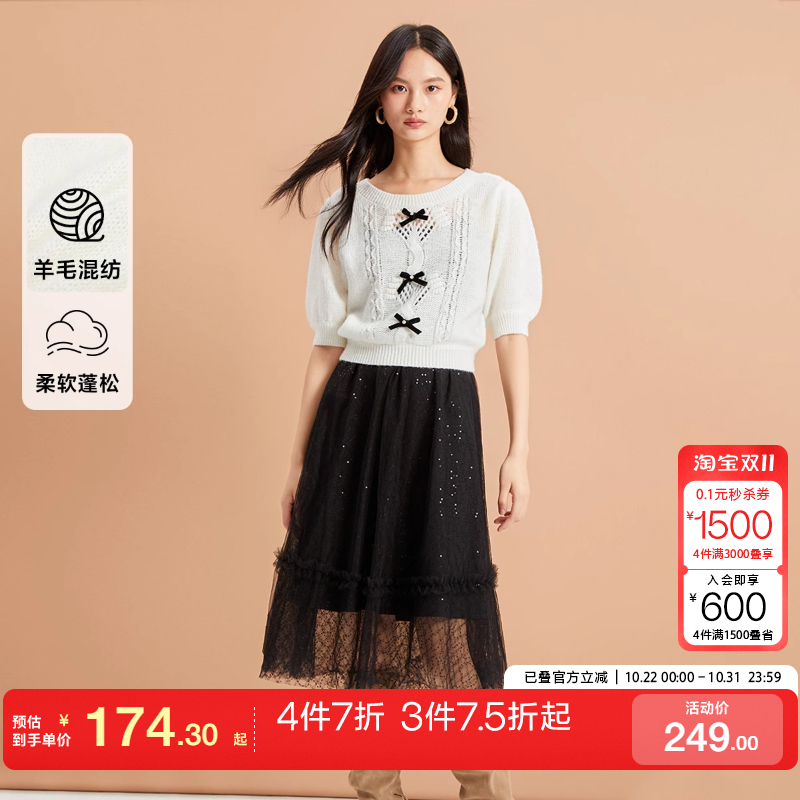 温柔系穿搭秋冬套装女小香风时尚蝴蝶结针织毛衣百褶半身裙两件套