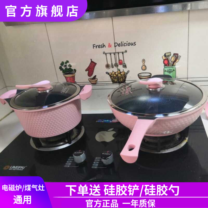 韩国不粘锅炒锅迪迪尼卡粉色炒菜锅家用无烟平底锅电磁炉燃气通用