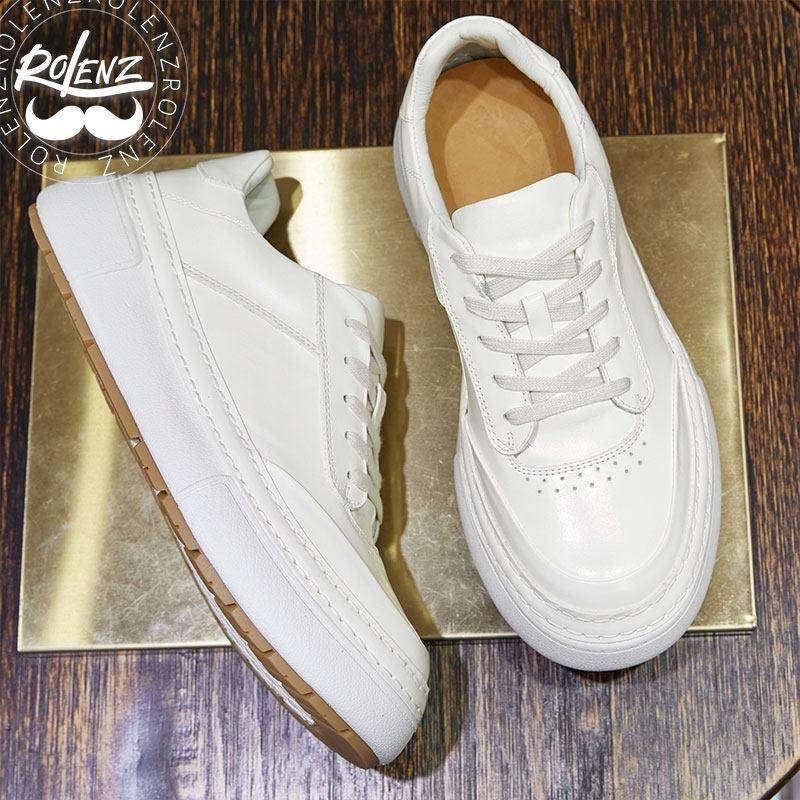 ROLENZ轻奢品牌春秋头层牛皮男皮鞋休闲透气百搭简约厚底小白板鞋