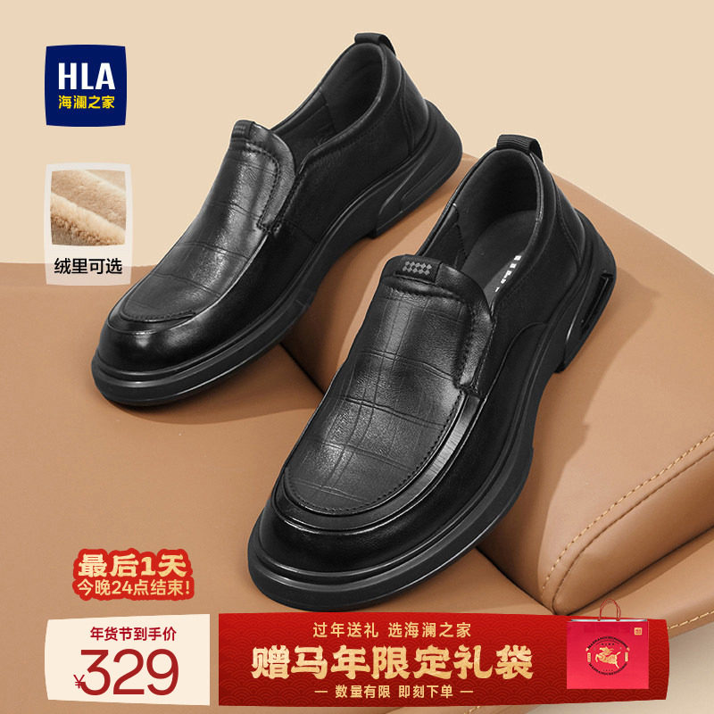 HLA/海澜之家男鞋新款鞋乐福冬季套脚软底真皮休闲加绒皮鞋中年鞋