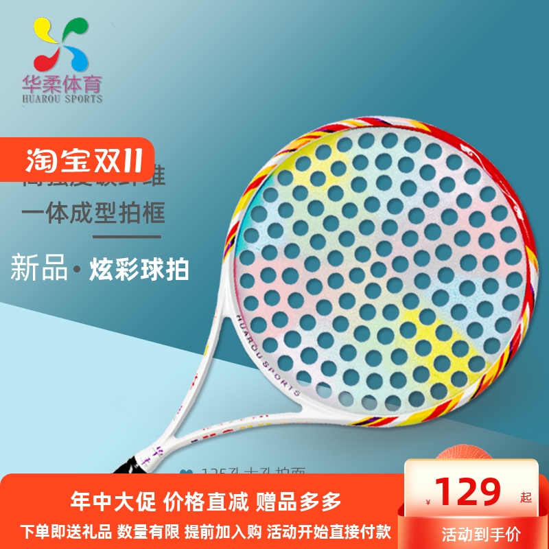 华柔体育正品新品华柔炫彩柔力球拍125大孔拍面碳纤维柔力球拍