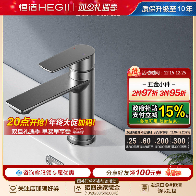 恒洁水龙头铜合金家用浴室卫浴抽拉冷热面盆龙头洗发卫生间洗手盆