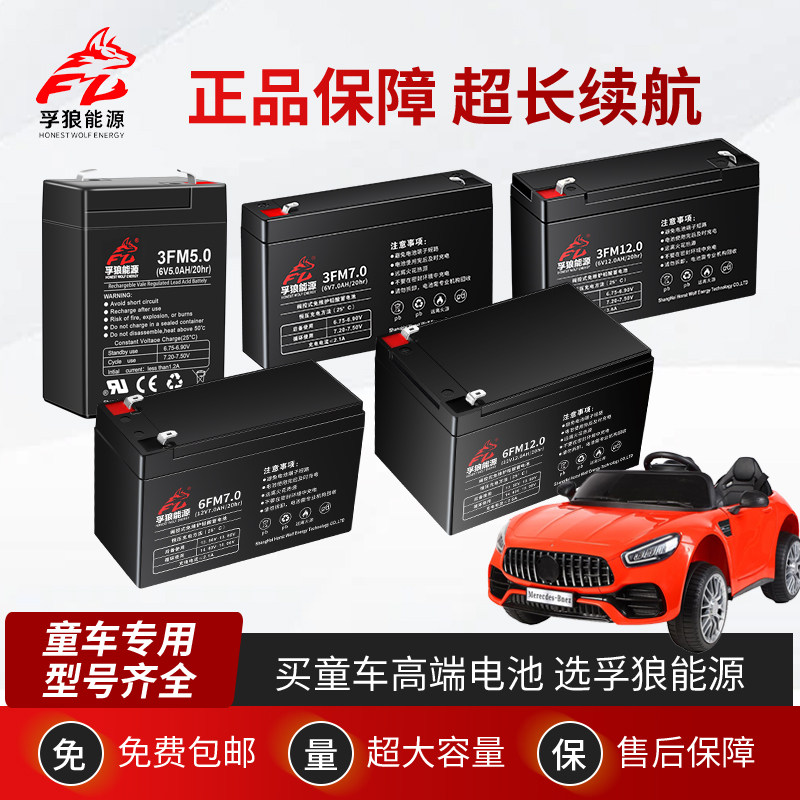 孚狼童车电瓶6V4AH4.5AH7AH儿童电动车6V12V三轮摩托四轮汽车电池